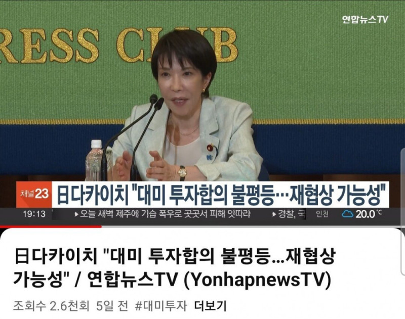 새 일본 총리 미국과 관세 협약 불평등 재협상 가능성 컨텐츠 정보 가+ 가- 0 0 본문 며칠전 일본 토론 프로에 나와 미국과의 관세협약에 대해 불평등하지 않았느냐는 질문에 유일하게 손을 들어 "운용과정에서 불평등한 부분이 나타나면 재협상 가능성이 있다" 고 말했던 새 일본 총리 다카이치 사나에 고이즈미 신지로는 "이번 합의가 그렇게까지 불평등하지 않다" 고 의견을 피력. 나머지 세 후보도 전반적 기조는 고이즈미 신지로와 같음 참고로 다카이치 사나에는 또 이런말도 하셨음 0 0 관련자료 댓글 0 등록된 댓글이 없습니다. 로그인한 회원만 댓글 등록이 가능합니다.