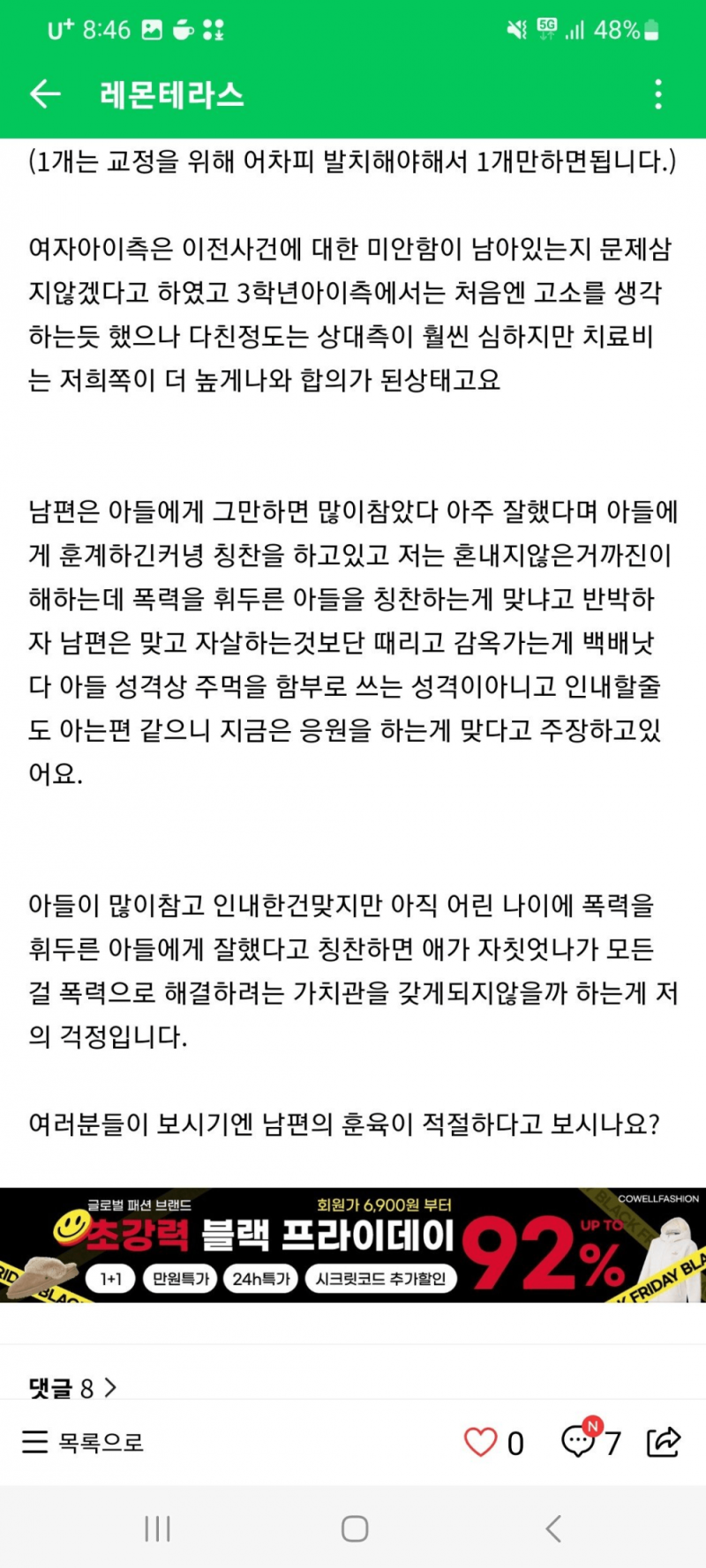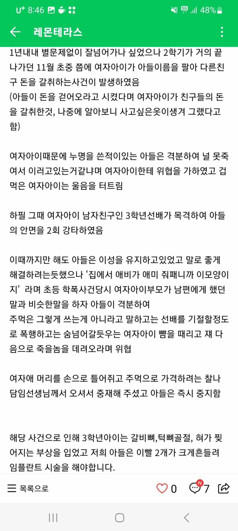 학교선배 줘패버린 중2 아들에게 잘했다는 아빠