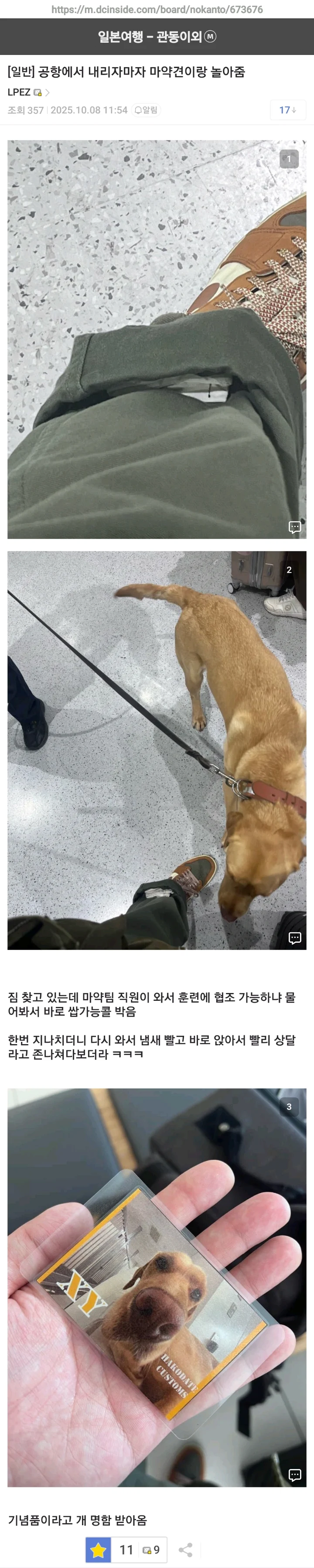 공항에서 마약견 훈련에 협조하면 받는 굿즈 컨텐츠 정보 가+ 가- 0 0 본문 귀여워 !!!!!! 0 0 관련자료 댓글 0 등록된 댓글이 없습니다. 로그인한 회원만 댓글 등록이 가능합니다.