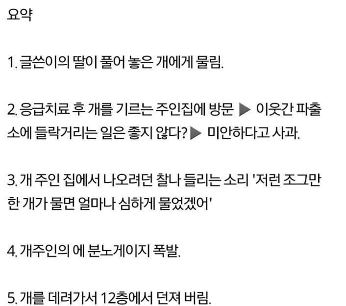 딸 물어버린 개를 12층에서 던진 썰 ㄷㄷ